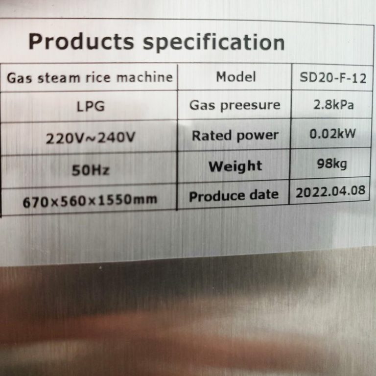 Gas type : LPG